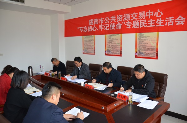 為了開好此次專題民主生活會,中心黨組做了扎實有效的會前準備工作,制定了《中共隴南市公共資源交易中心黨組關(guān)于“不忘初心、牢記使命”專題民主生活會方案》,開展了會前規(guī)定篇目的政治理論學(xué)習(xí)和談心談話,征求了意見建議,班子和班子成員認真撰寫對照檢查材料,切實為開好本次專題民主生活會打下了堅實基礎(chǔ)。