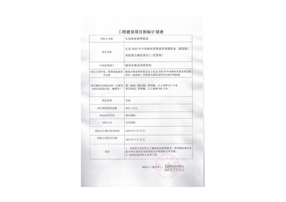 禮縣2025年中央林業(yè)草原改革發(fā)展資金(提前批)其他國土綠化項目