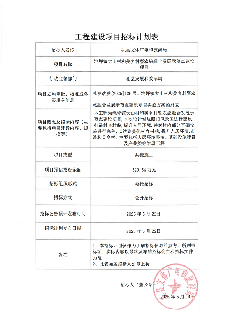洮坪鎮(zhèn)大山村和美鄉(xiāng)村暨農(nóng)旅融合發(fā)展示范點建設(shè)項目