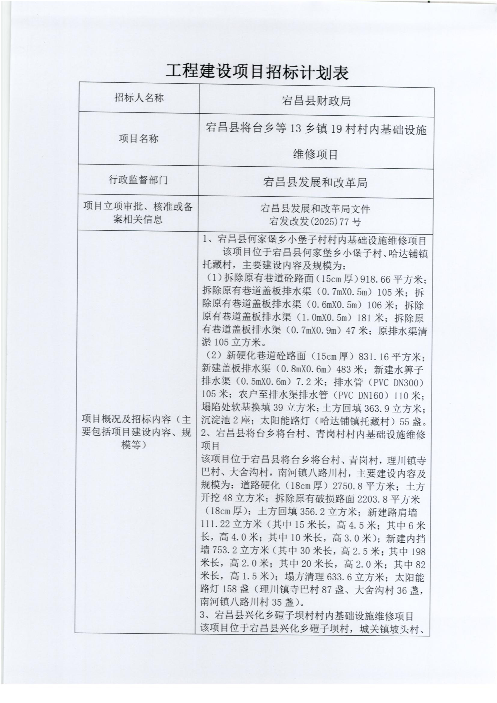 宕昌縣將臺鄉(xiāng)等13鄉(xiāng)鎮(zhèn)19村村內(nèi)基礎設施維修項目