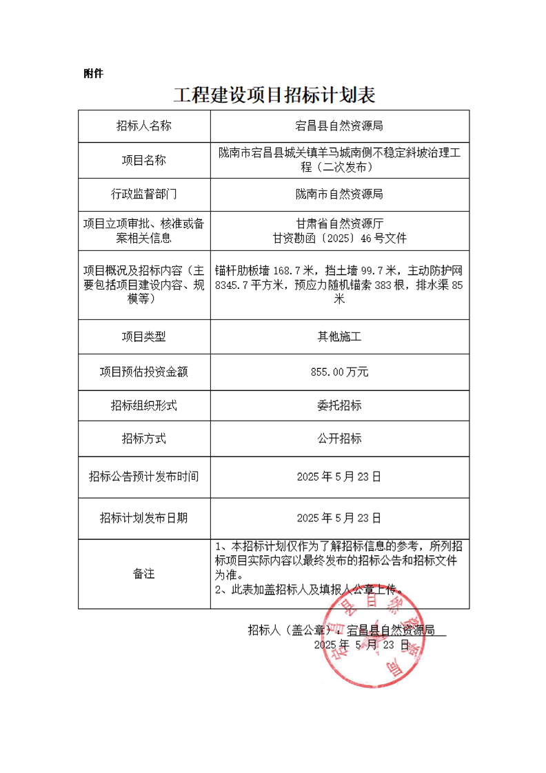 隴南市宕昌縣城關(guān)鎮(zhèn)羊馬城南側(cè)不穩(wěn)定斜坡治理工程(二次發(fā)布)