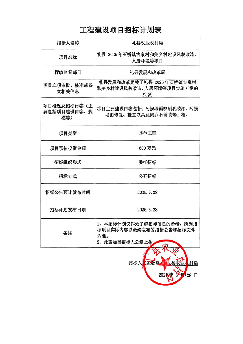 禮縣 2025年石橋鎮(zhèn)古泉村和美鄉(xiāng)村建設(shè)風(fēng)貌改造、人居環(huán)境等項目