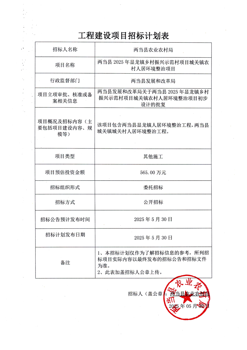 附件:招標(biāo)計劃表兩當(dāng)縣2025年顯龍鎮(zhèn)鄉(xiāng)村振興示范村項(xiàng)目城關(guān)鎮(zhèn)農(nóng)村人居環(huán)境整治項(xiàng)目.pdf