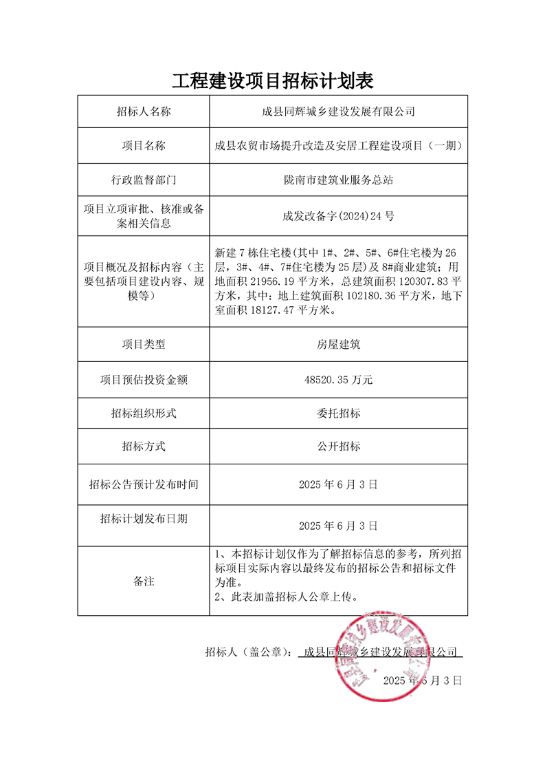 成縣農(nóng)貿(mào)市場提升改造及安居工程建設(shè)項(xiàng)目(一期)