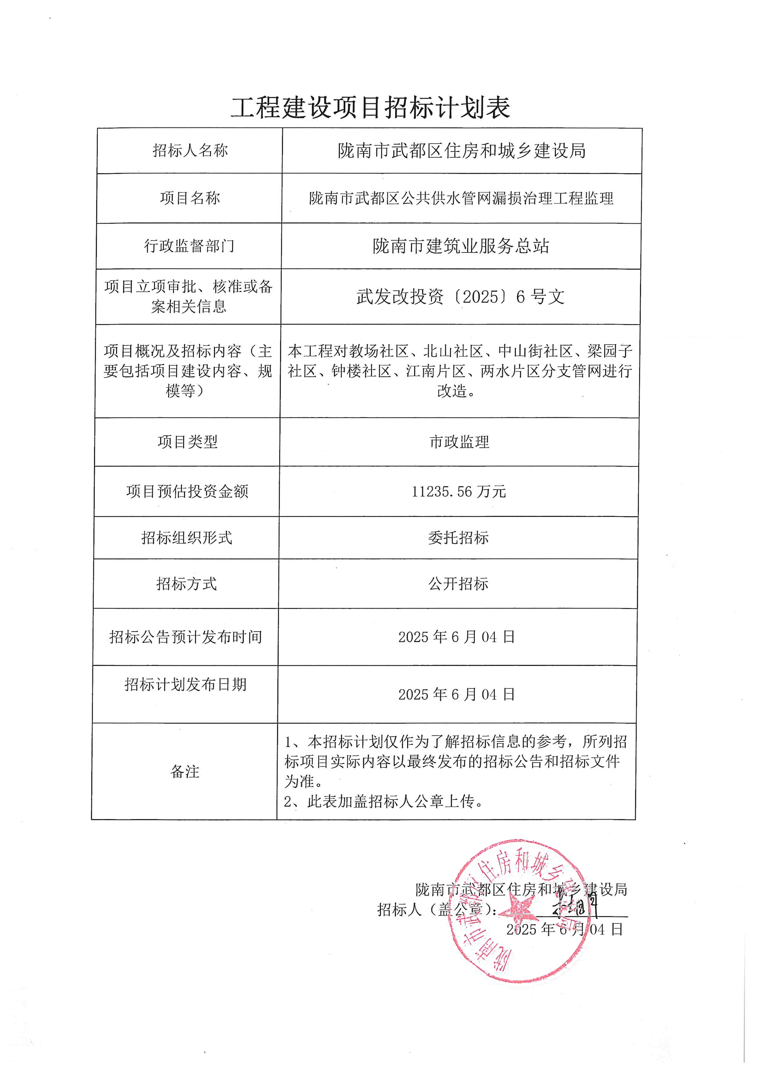 隴南市武都區(qū)公共供水管網(wǎng)漏損治理工程監(jiān)理