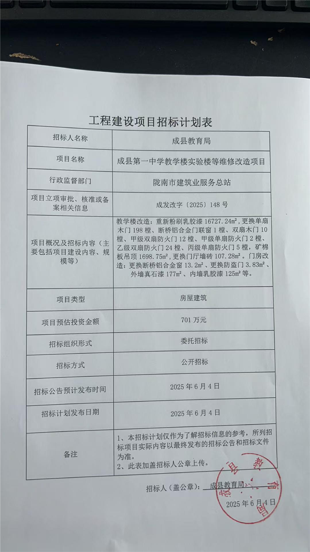 成縣第一中學(xué)教學(xué)樓實驗樓等維修改造項目