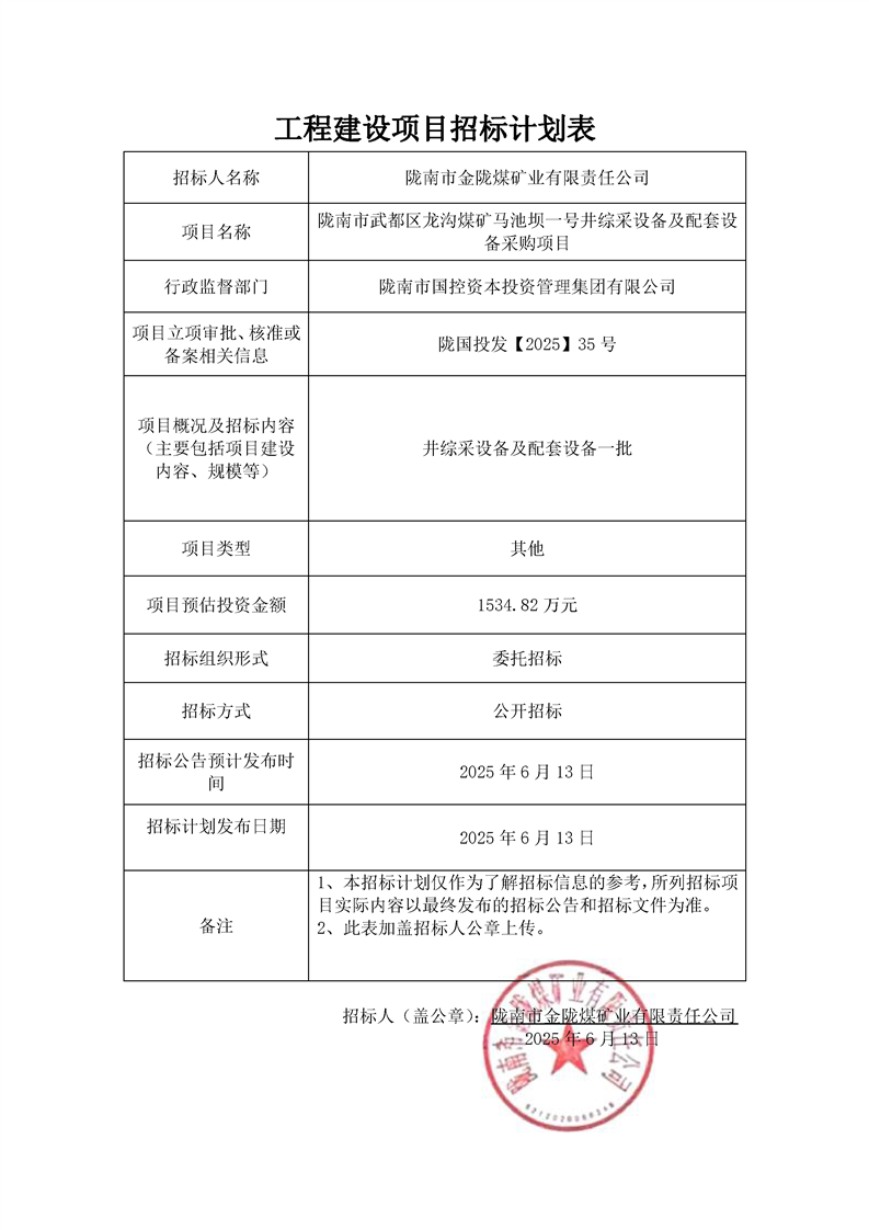隴南市武都區(qū)龍溝煤礦馬池壩一號井綜采設備及配套設備采購項目