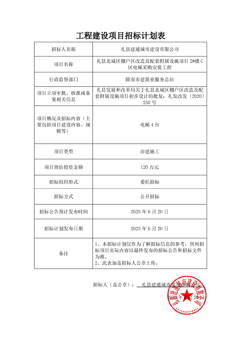 禮縣北城區(qū)棚戶區(qū)改造及配套附屬設(shè)施項目2#樓C區(qū)電梯采購安裝工程