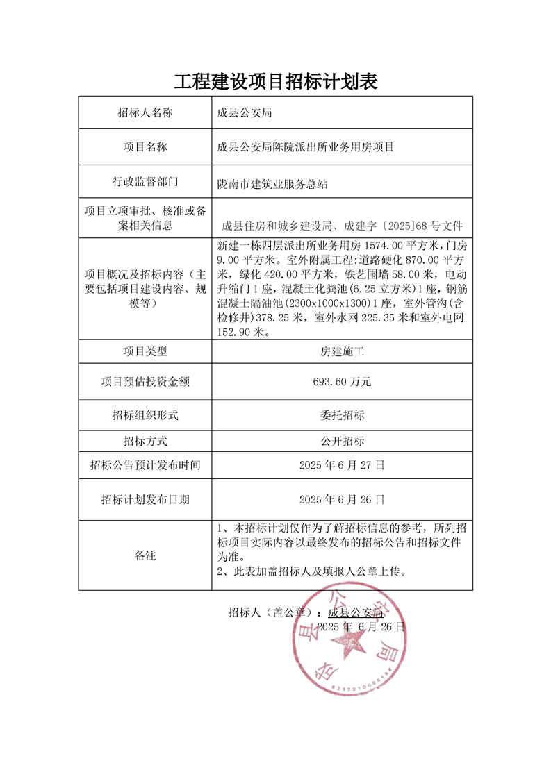 成縣公安局陳院派出所業(yè)務(wù)用房項(xiàng)目