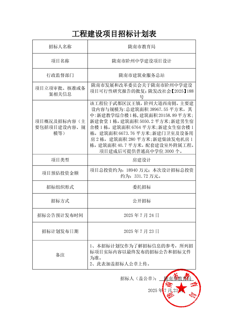 招標計劃—隴南市階州中學(xué)建設(shè)項目設(shè)計.pdf