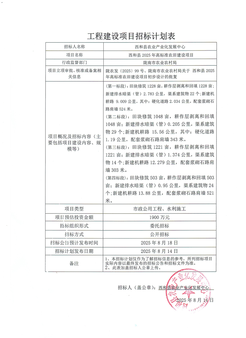 西和縣2025年高標準農(nóng)田建設(shè)項目