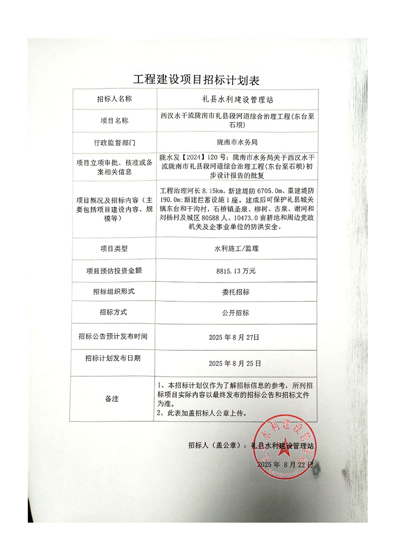 西漢水干流隴南市禮縣段河道綜合治理工程(東臺(tái)至石壩)