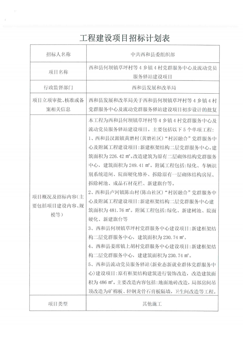 西和縣何壩鎮(zhèn)草坪村等4鄉(xiāng)鎮(zhèn)4村黨群服務中心及流動黨員服務驛站建設項目